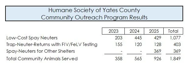 Our Impact 2025 Live Release Rate: 98.9% TRADITIONAL ANIMAL PROGRAMSIntakes Outcomes COMMUNITY OUTREACH SERVICES